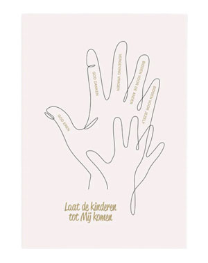 - Een stijlvolle, stevige A5 kaart met de gebedshand en in goudletters de tekst ‘Laat de kinderen tot Mij komen’. Mooi om een plek te ...